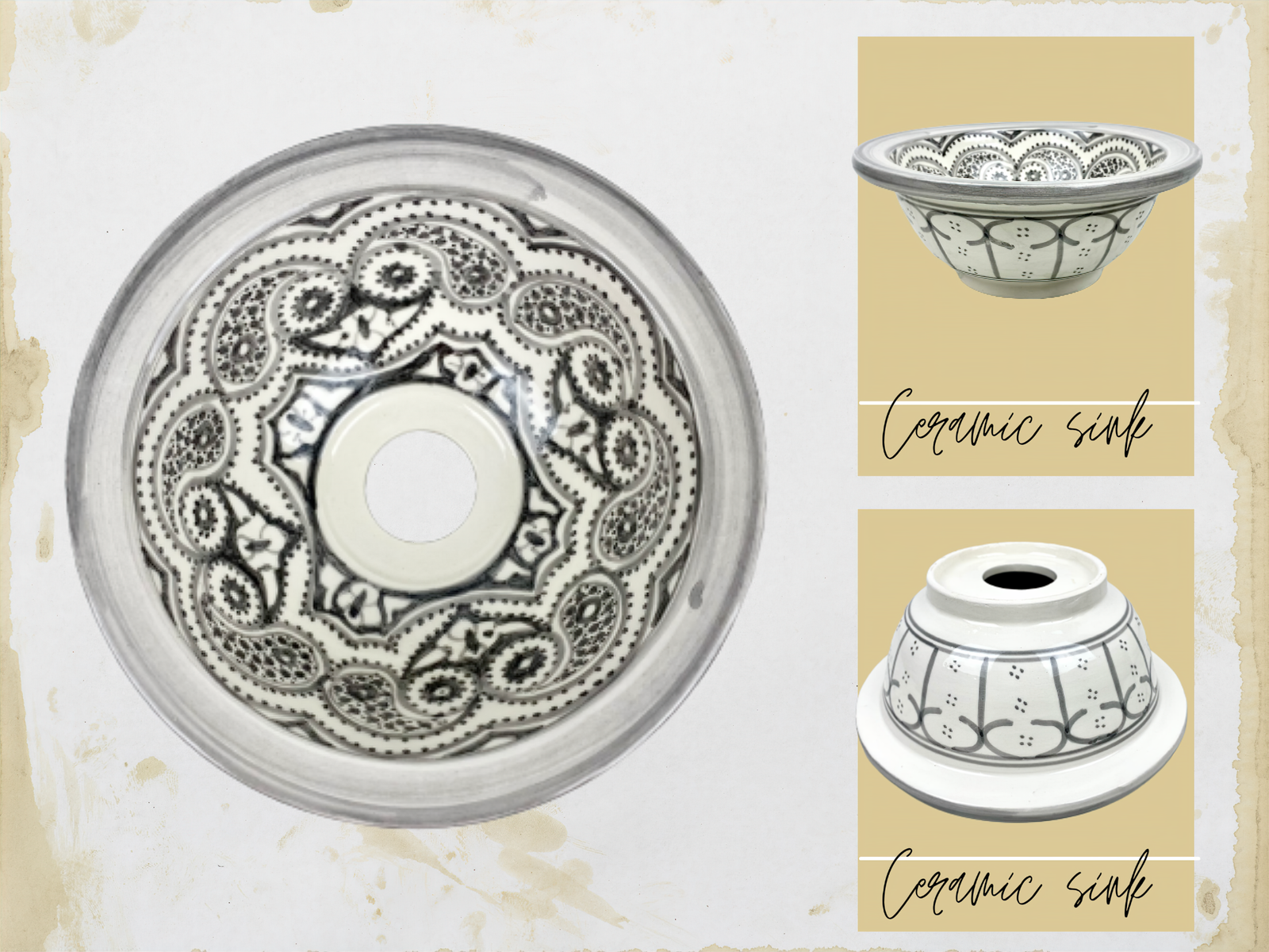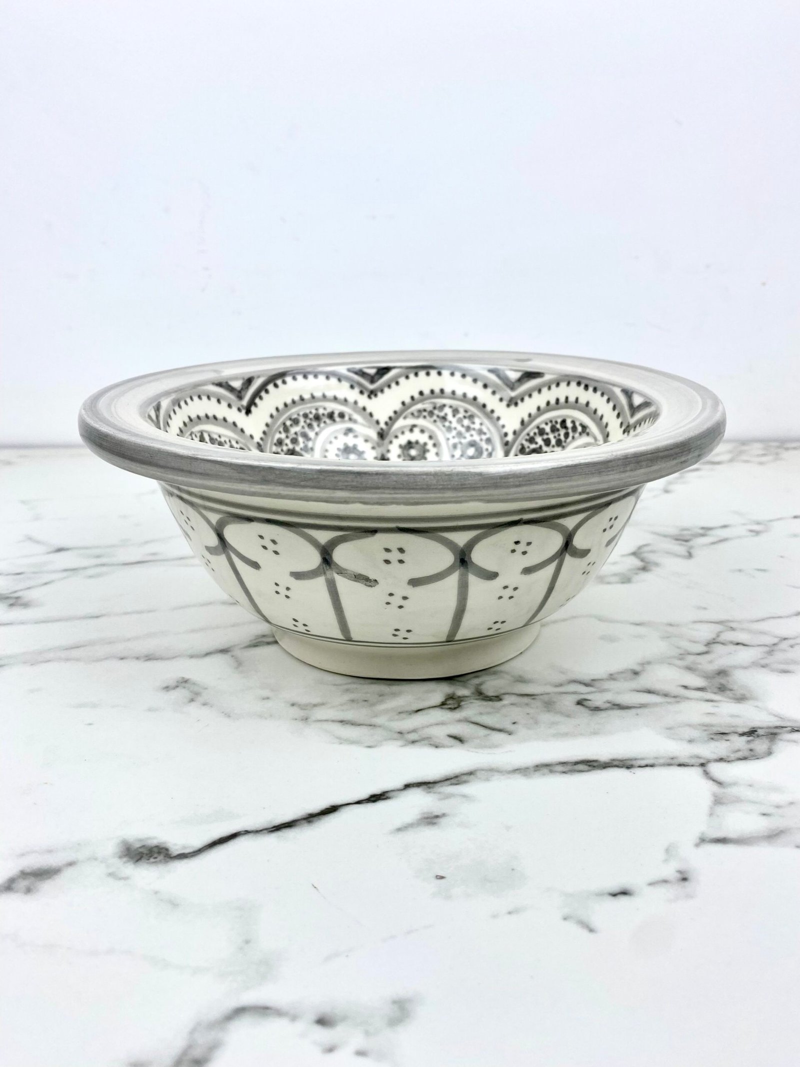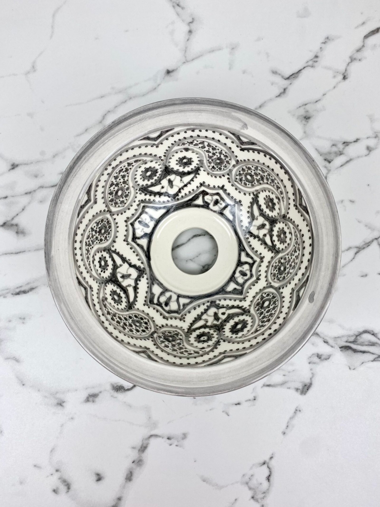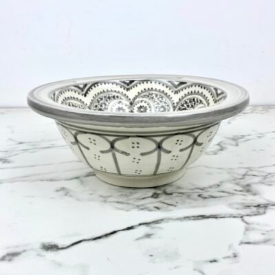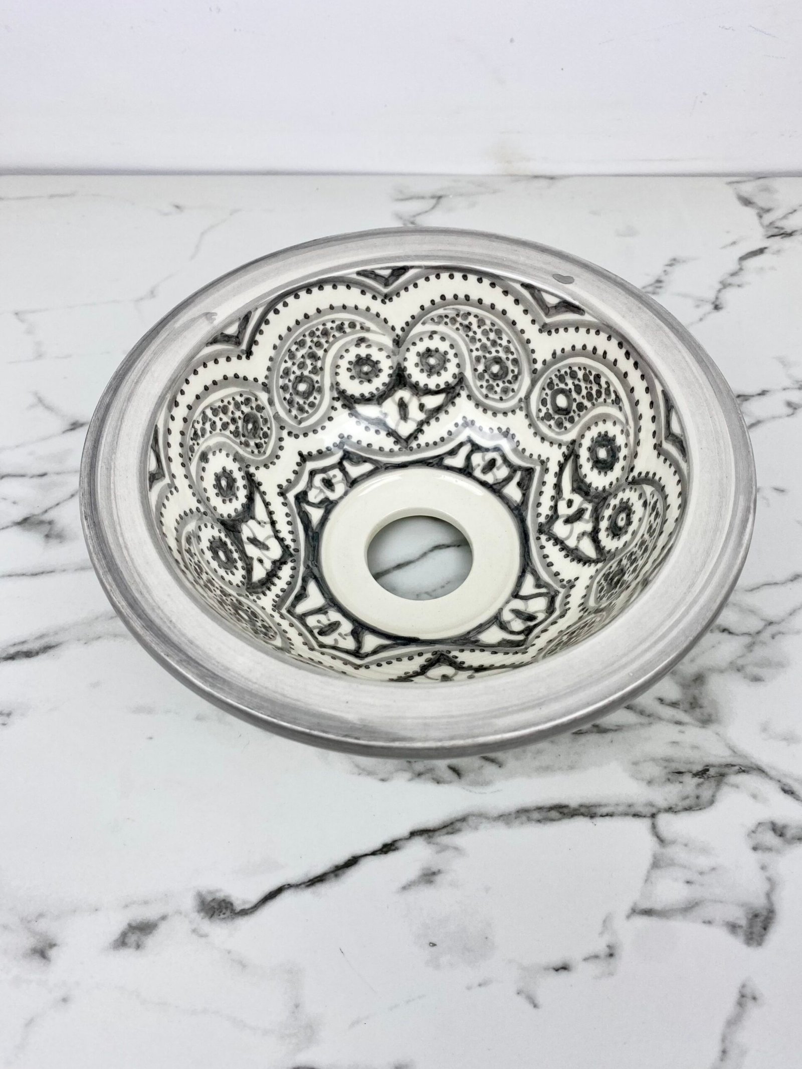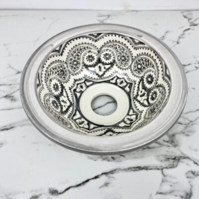 Ceramic Gray Basin With Moroccan Design – Elegant Bathroom Vanity Sink – Handcrafted Sink