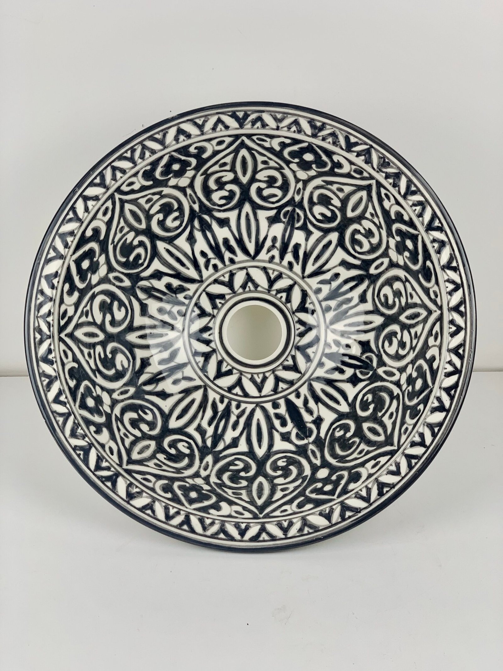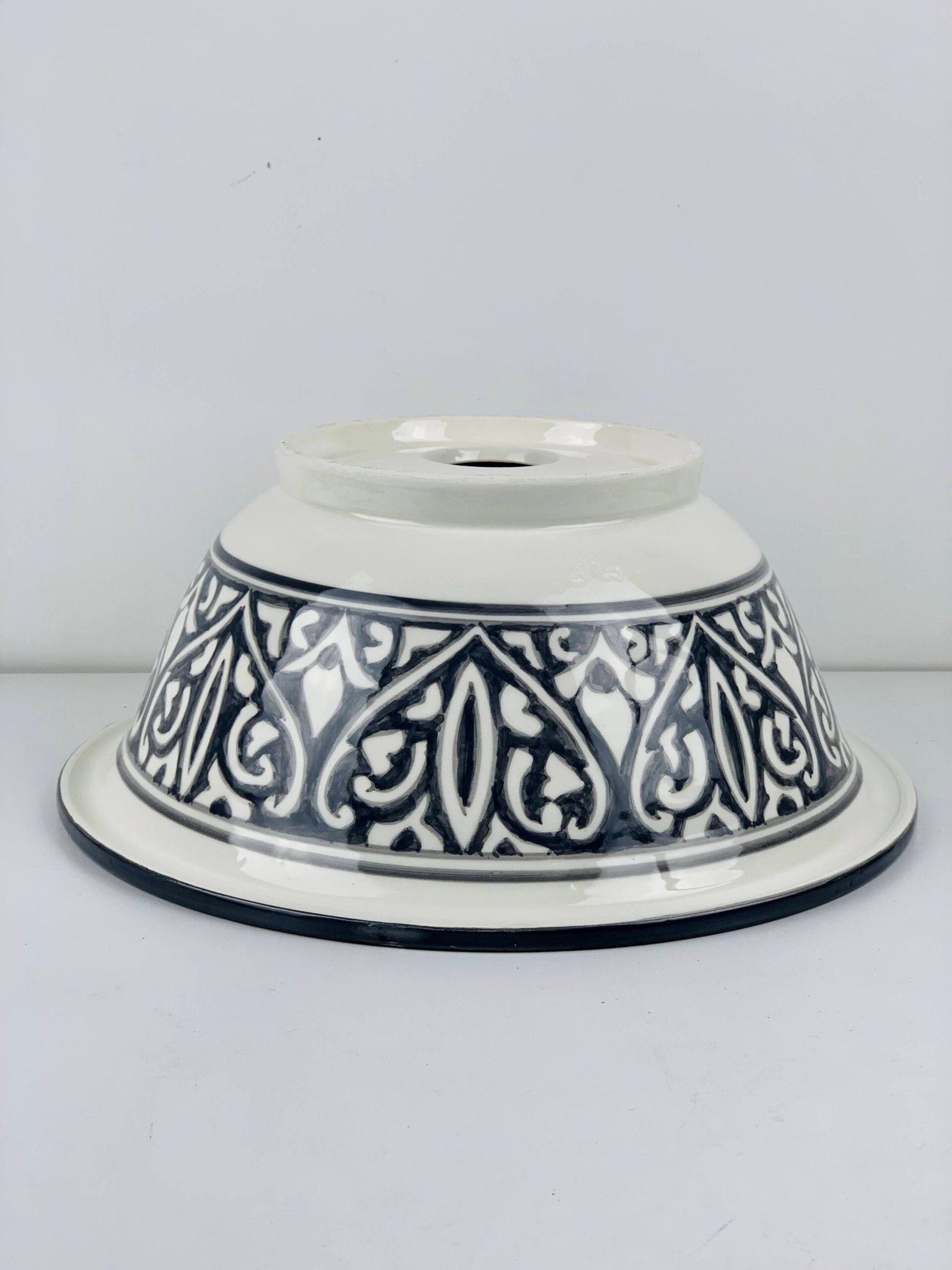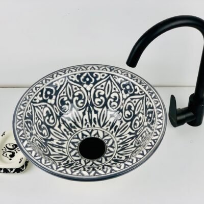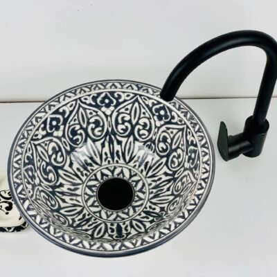 Hand-Painted Ceramic Sink with Brass Rim – Elegant Moroccan Design