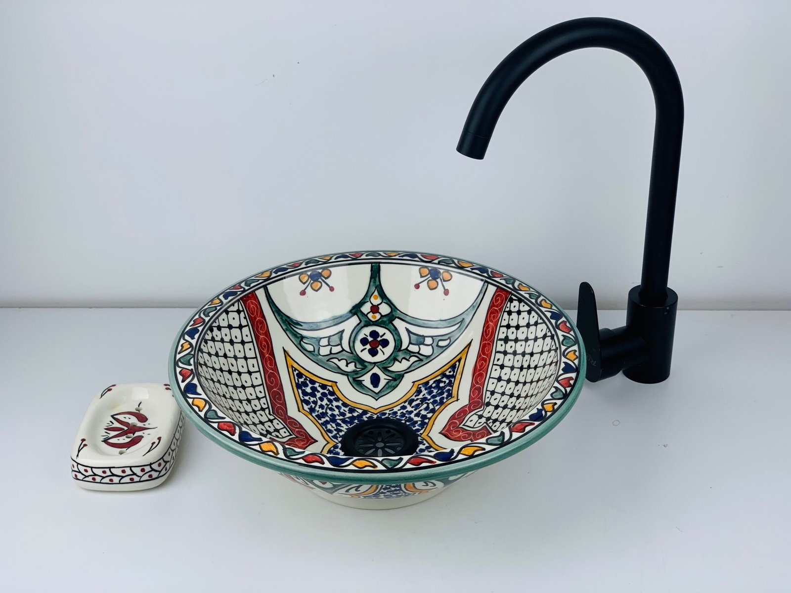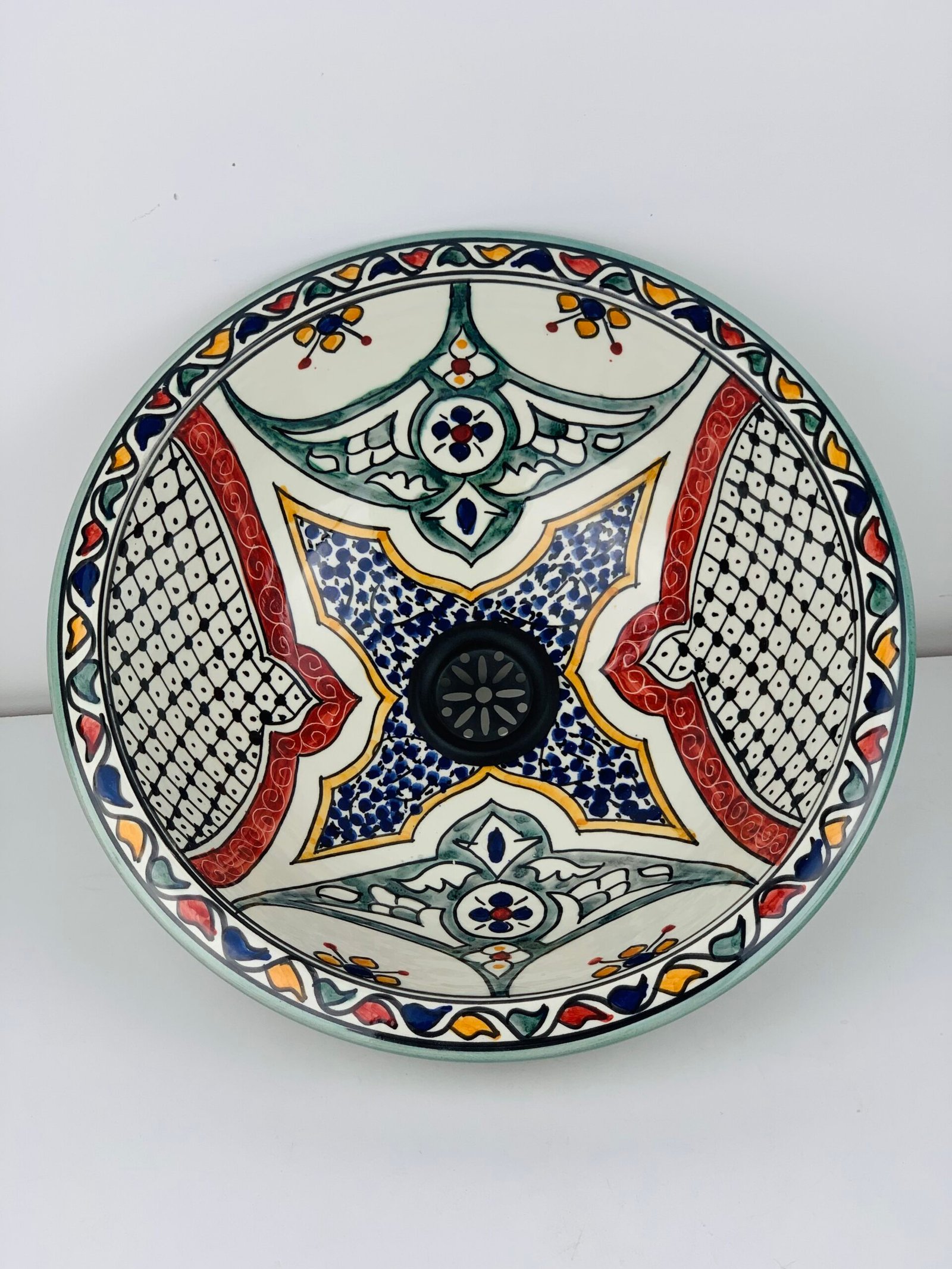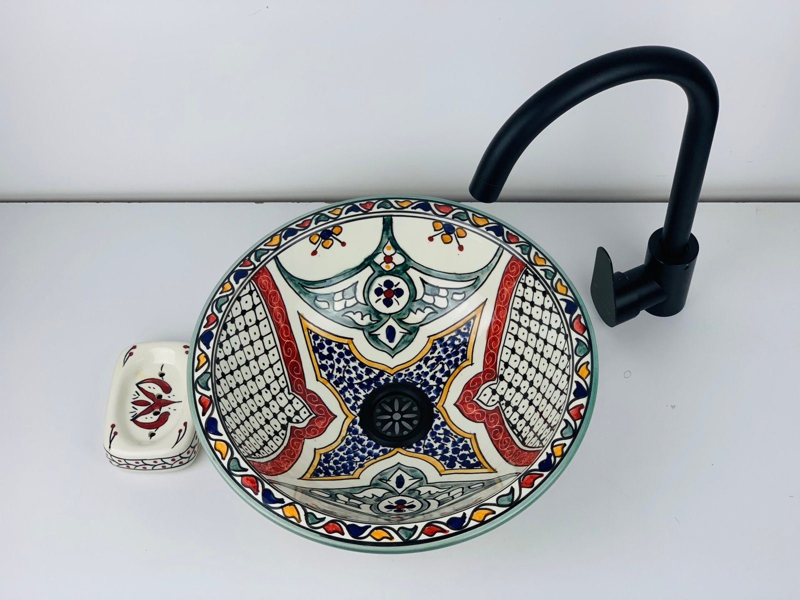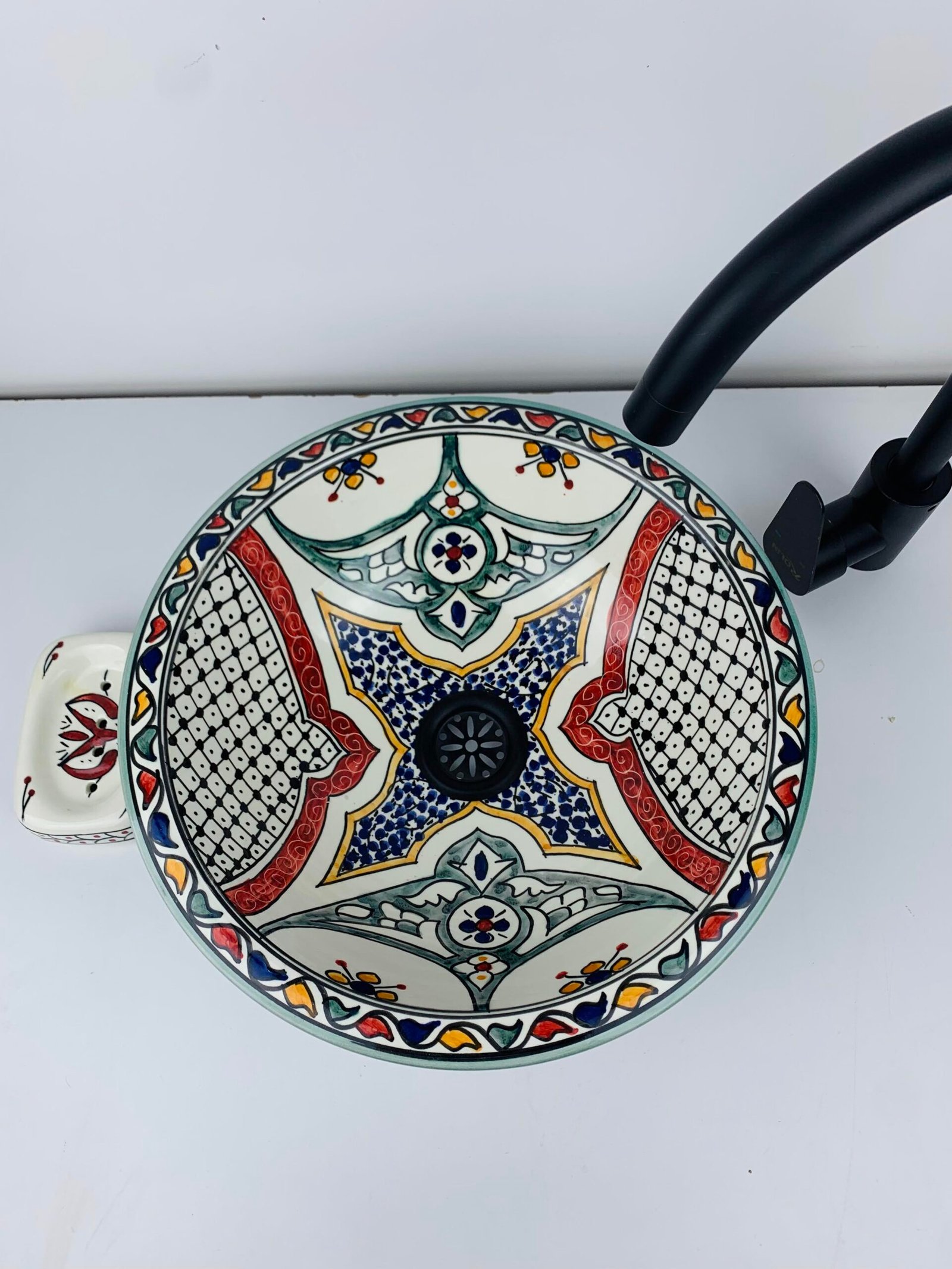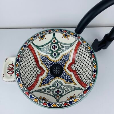 Hand-Painted Ceramic Sink with Brass Rim – Elegant Moroccan Design