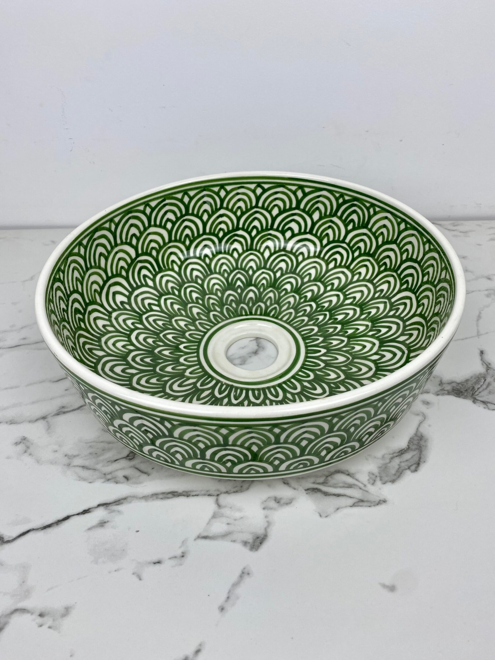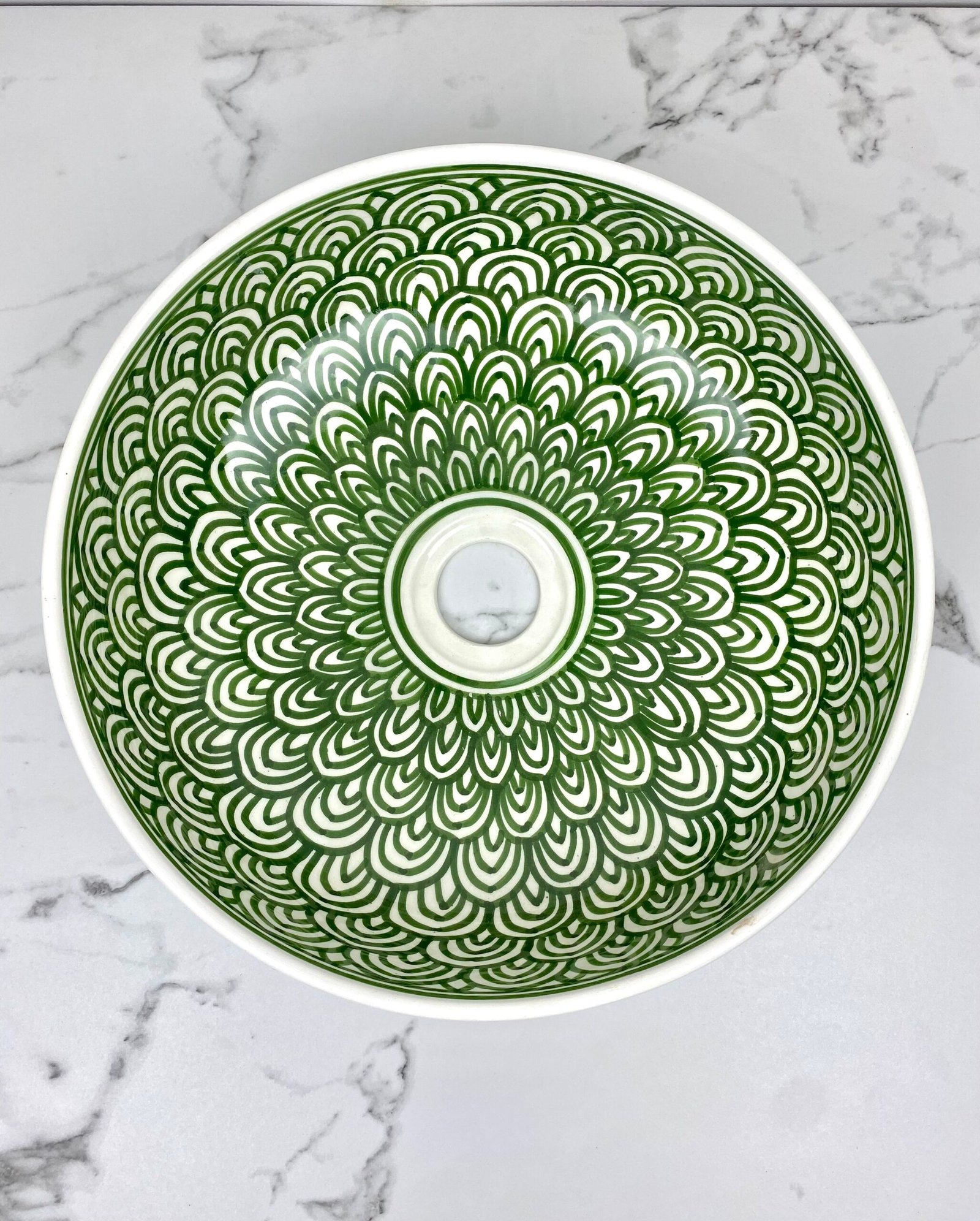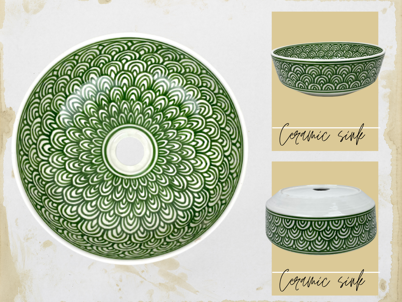 Moroccon Ceramic Green Basin – Elegant Bathroom Vanity Sink – Handcrafted Sink